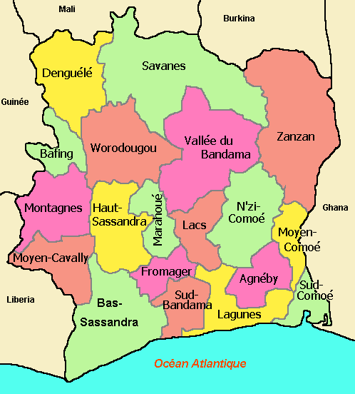 La carte des 31 régions ivoiriennes